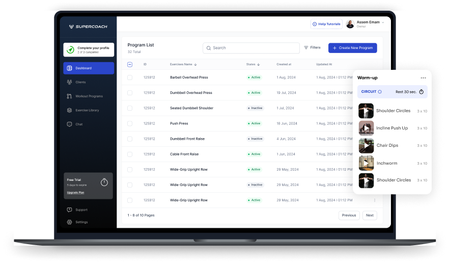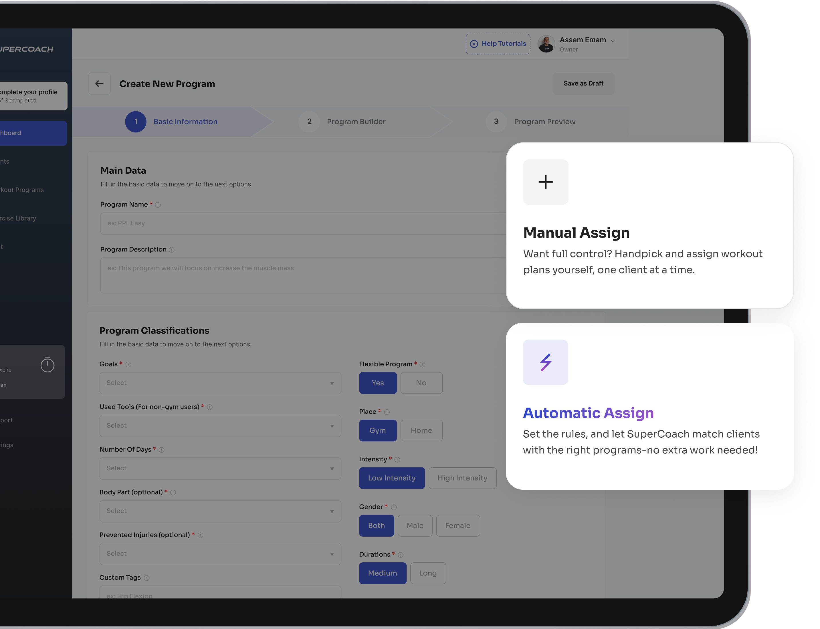 صمّم خطط تمارين مخصّصة لكل متدرّب في ثوانٍ معدودة.